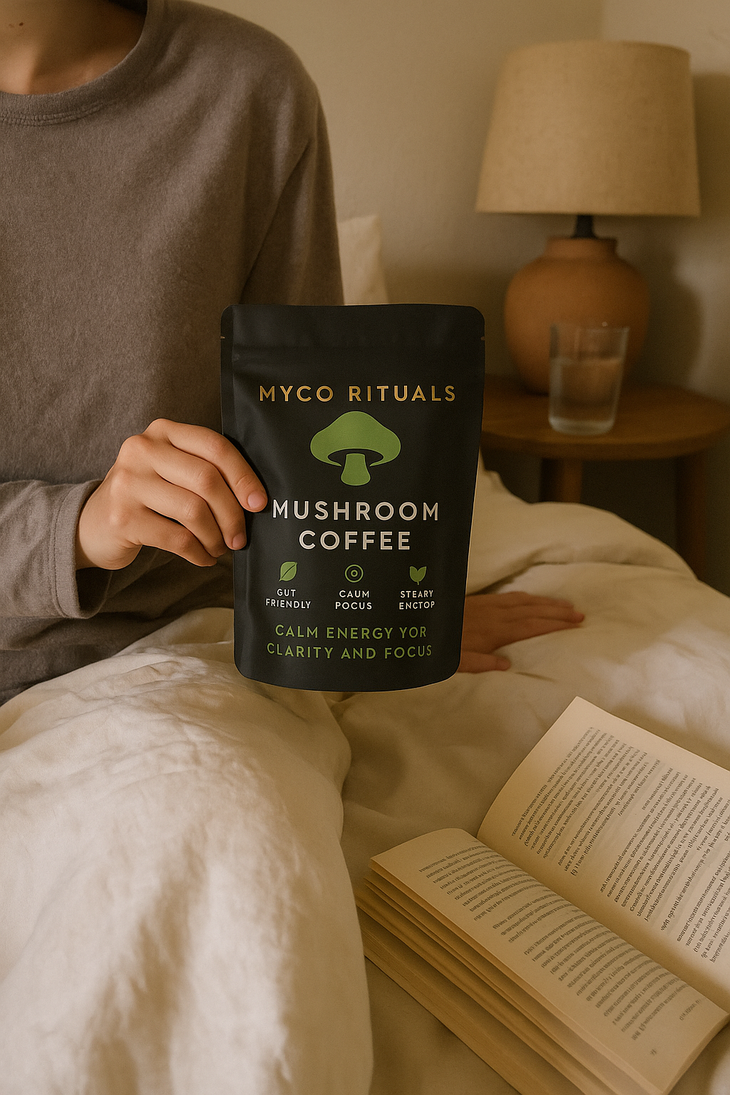 Different kind of energy. Coffee: spike → jitters → crash. Myco Rituals: gentle rise → sustained clarity → no crash.